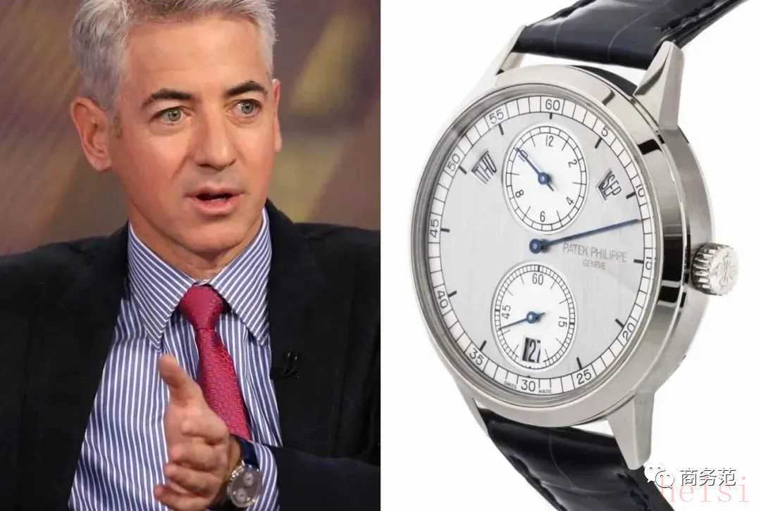 人称华尔街“小巴菲特”的私募大佬比尔·阿克曼也爱百达翡丽,他上手的是一块超复杂功能时计系列腕表,同时集齐陀飞轮、万年历、三问三大顶级复杂功能,铂金表壳低调奢华,很符合他新贵的身份,市场价约545万人民币。