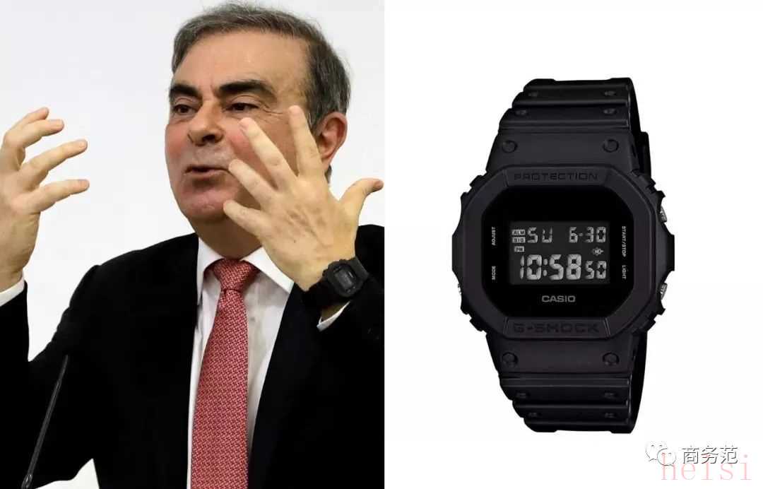 除了上面提到的这些,今年年初成功“越狱”的前日产董事长戈恩,在黎巴嫩开发布会时,戴了一块貌似卡西欧G-SHOCK的电子表,售价不到千元,难道是跑路时戴会比较抗造?