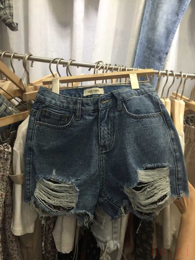 4、中星里最推荐大家囤货的,是各种款型的牛仔短裤!做工差点的25元一条,面料好点的40-65元,破洞、黑丝、系带,这些流行元素都有,想想可以穿整个夏天的牛仔短裤,没有妹子会嫌多吧。