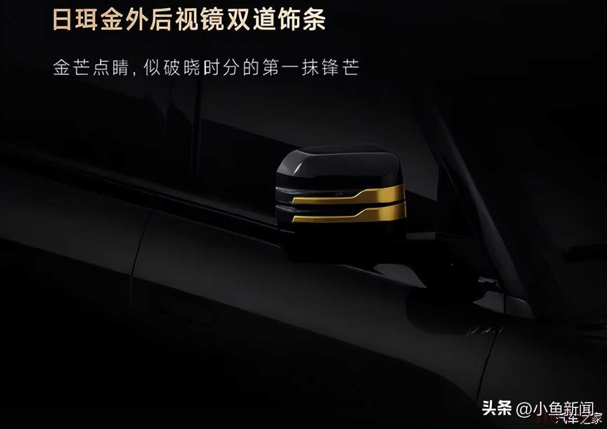 官方表示,曜石黑配日珥金全新车色的色彩灵感源自2000多年前黑漆描金工艺,搭配由24K真金打造的甲骨文黄金车标。作为新版本车型,其整体沿用现款车型的主体设计风格。具体来看,其以“鼎”为灵感来源的前脸设计语言,搭配源自于甲骨文的“电”字的仰望品牌LOGO,让其有着不错的辨识度。值得一提的是,该车型前后配备的车标材质采用24K真金打造,提升其尊贵感。