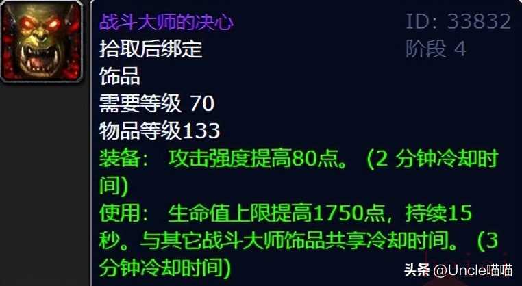 今日份最后的席位就给到战斗大师的决心,这东西不仅仅是物理系职业PVP专属饰品,他也是我们熊T后期不错的饰品之一,喵叔就非常喜欢随身带一个以备特定BOSS,有了它仇恨稳定,而且15秒的抬血线还是非常实用的,所以今天最后席位给到他,不知道各位兄弟服不服?那么最后的灵魂拷问给到各位大兄弟,在你心目中TBC版本常驻攻强的天花板级饰品又是哪一款呢?我们评论区见!