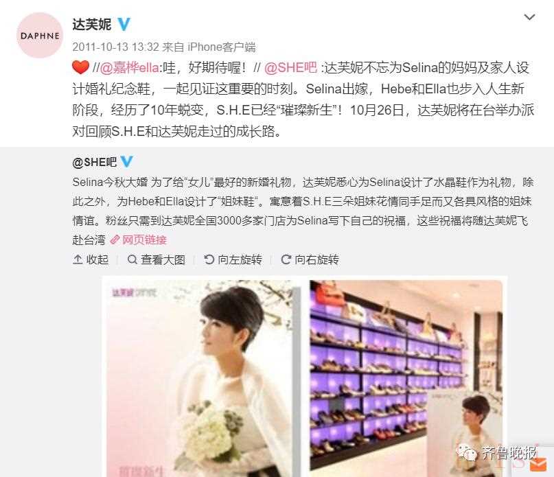Doris_Chanyan :当时的“梦想”就是拥有一双达芙妮的鞋。不止SHE,刘若英好像也代言过