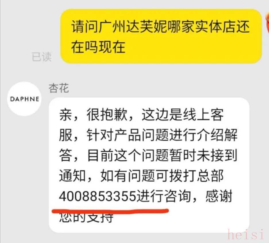 达芙妮如今到底有多少家广州分店呢?CBD君询问了天猫达芙妮官方旗舰店,客服称“不了解,需拨打总部电话进行咨询”。