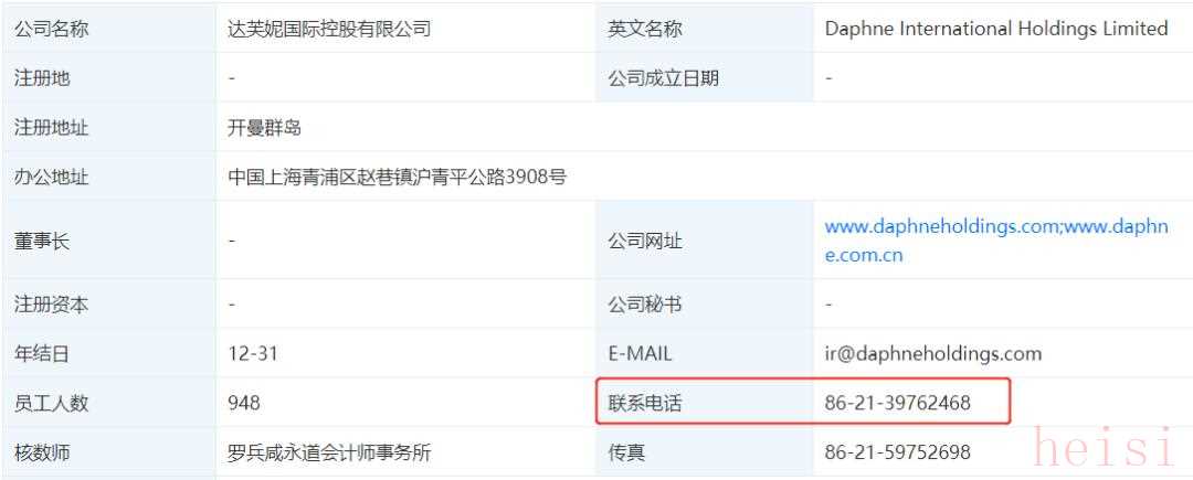而CBD君根据搜索引擎查询到的达芙妮国际控股有限公司官网上显示的大陆地区的联系电话,拨打后发现此号码不正确。天眼查中也显示的是此号码。