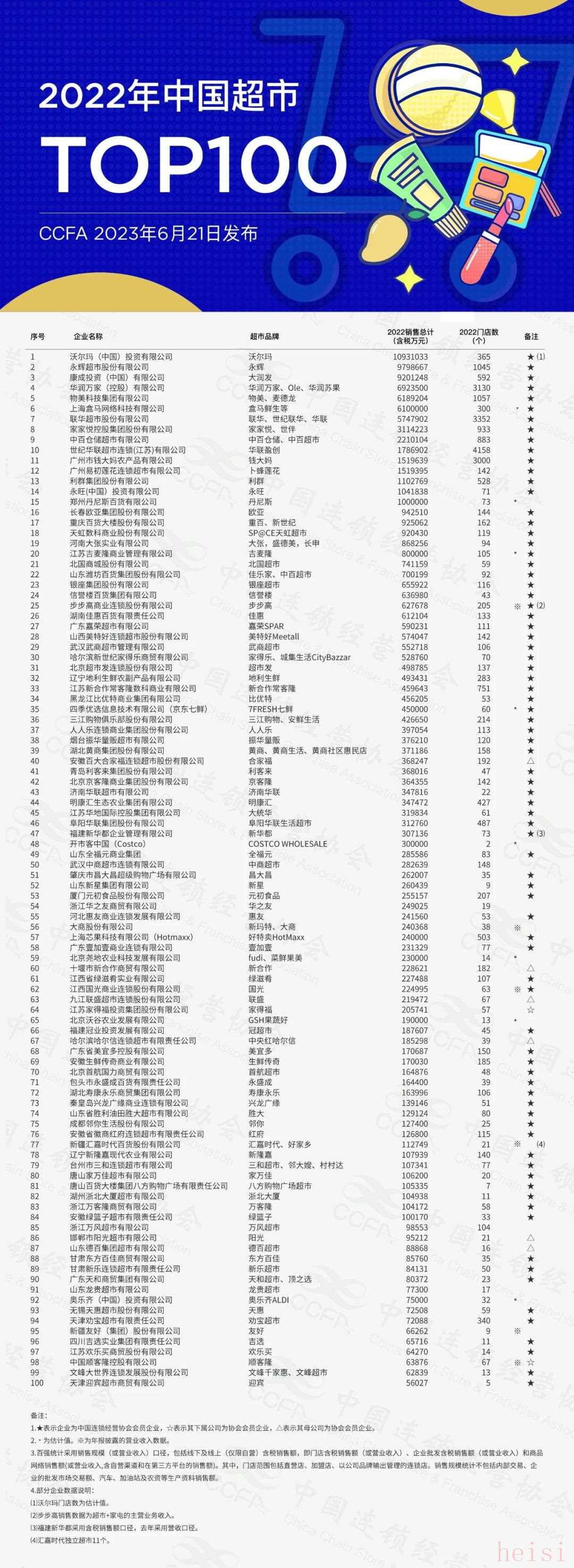 根据2024年中国超市百强榜单,沃尔玛继续领跑,成功蝉联榜首。这一成绩不仅体现了沃尔玛在中国零售市场的强大竞争力和品牌影响力,也反映了其持续优化运营和提升顾客体验的努力。
