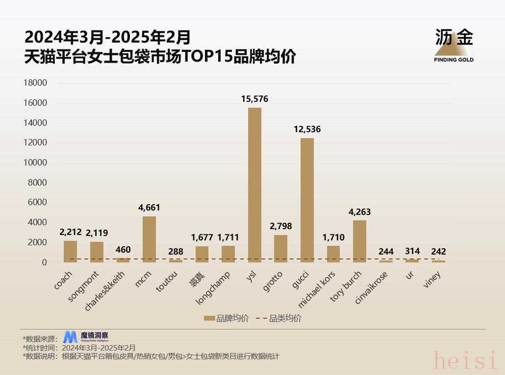 从天猫平台女包市场头部品牌价格情况来看,YSL、Gucci品牌价格均在万元以上,Coach、山下有松、裘真等品牌价格均在千元级以上,其次是以Charles&Keith为代表的百元级品牌。
