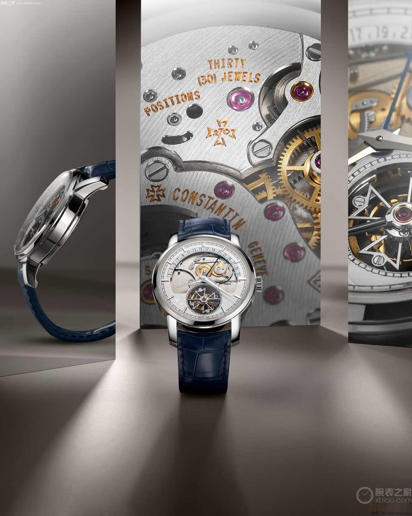 江诗丹顿传袭系列陀飞轮逆跳日历镂雕腕表(型号:6010T/000P-H055),表盘左侧和陀飞轮桥板上清晰可见马耳他十字,用作270周年纪念标志。
