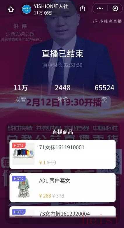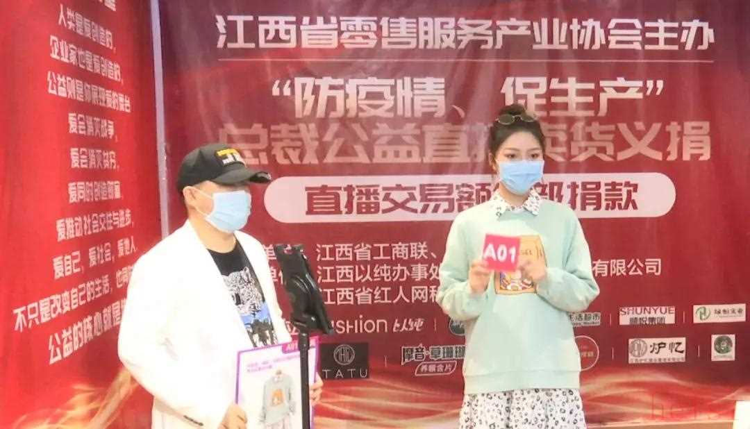 2020年2月12日晚19:30分,江西省零售服务产业协会第一期线上总裁直播义卖公益活动在中山路以纯店内准时开播,由江西以纯品牌提供价值1000万元的服装货物进行现场直播义卖。