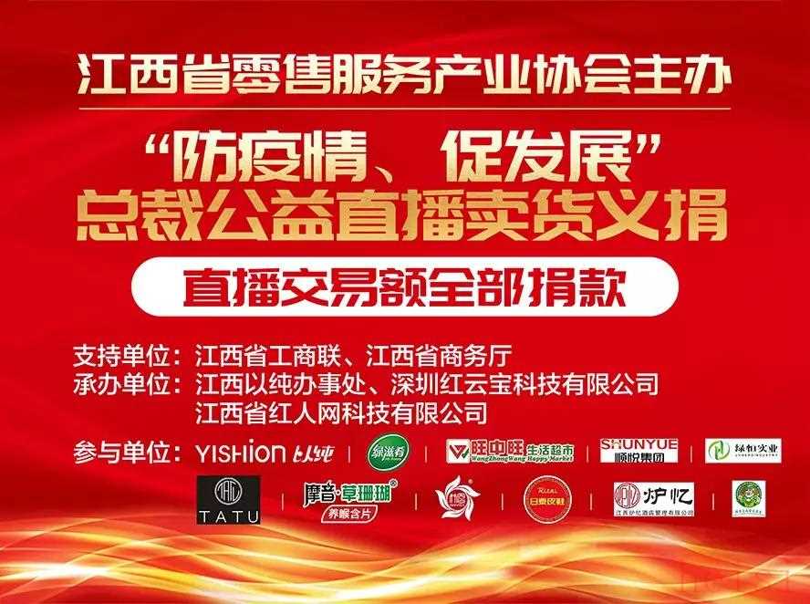 在江西省工商联、江西省商务厅的支持下,江西省零售服务产业协会联合数十家副会长及会员企业积极响应,省内外知名企业品牌以纯、柒牌、绿滋肴、顺悦集团、国信投资、林恩茶业、绿恒实业、摩音·草珊瑚、旺中旺、她图、日泰皮鞋、炉忆家宴、亚马逊自助餐饮共同参与,积极响应江西省委省政府号召,在坚决打赢疫情防控阻击战的同时,积极推动保障经济社会健康发展。