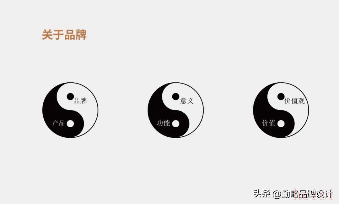 勤略认为这些定义都是表象,其实,品牌是魂,产品之魂,企业之魂。具体而言品牌就是无形之产品,如果说产品是体,品牌就是魂,产品和品牌之间本自一体、互为阴阳,就好比太极的两翼,一阳一阴,一虚一实,互为其根,共同满足人们的物质和精神需求。