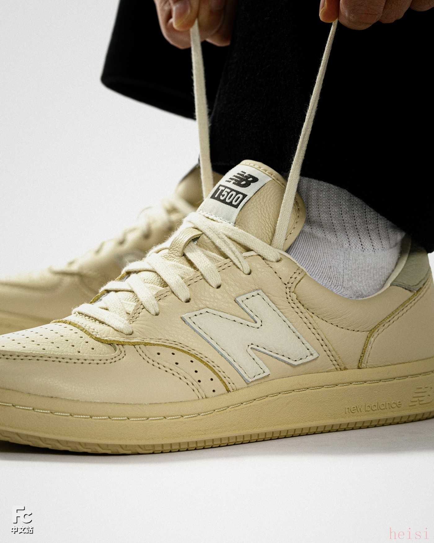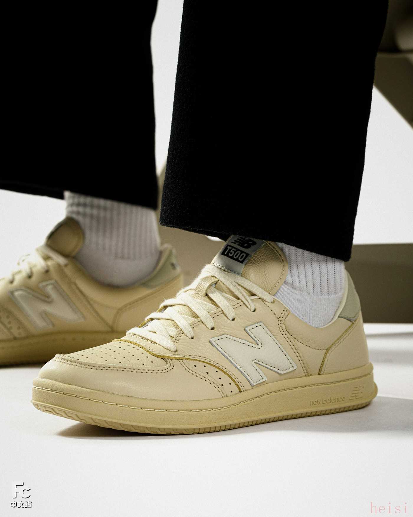 双方选择最初于 1982 年发布经典网球鞋 New Balance T500 为蓝本,原本就是贵族运动的网球,自然成为了「老钱风」最佳的载体。