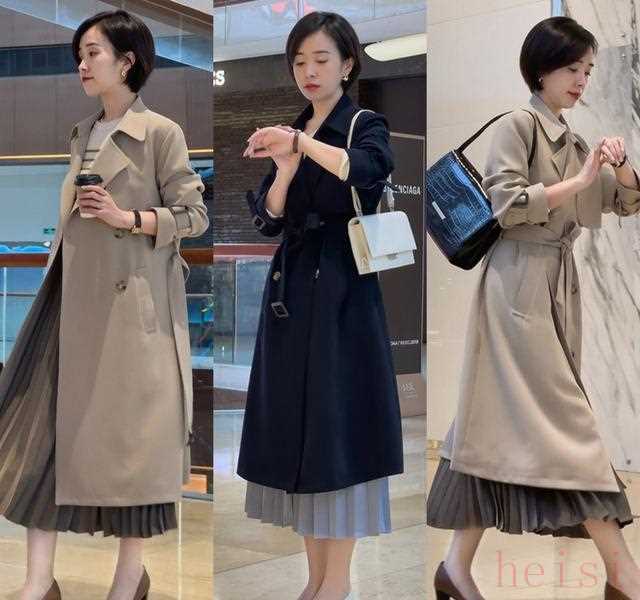 风衣是秋冬季节既实用又时尚的单品,其宽松的版型和百变的设计,能够很好地遮盖身材的不足,同时展现穿着者的随性风格。选择中等长度或者长款的风衣,搭配合适的内搭和鞋子,可以打造出既保暖又时髦的秋冬造型。风衣的颜色选择