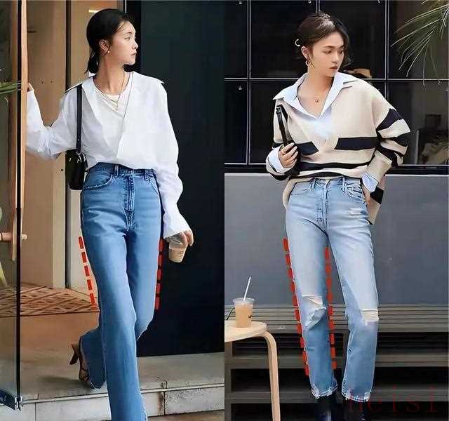 如今,流行趋势告诉我们,传统的宽松阔腿裤已经逐渐被“微喇裤”取代,这种裤型在膝盖处微收,裤脚略扩,既遮肉又显腿长。
