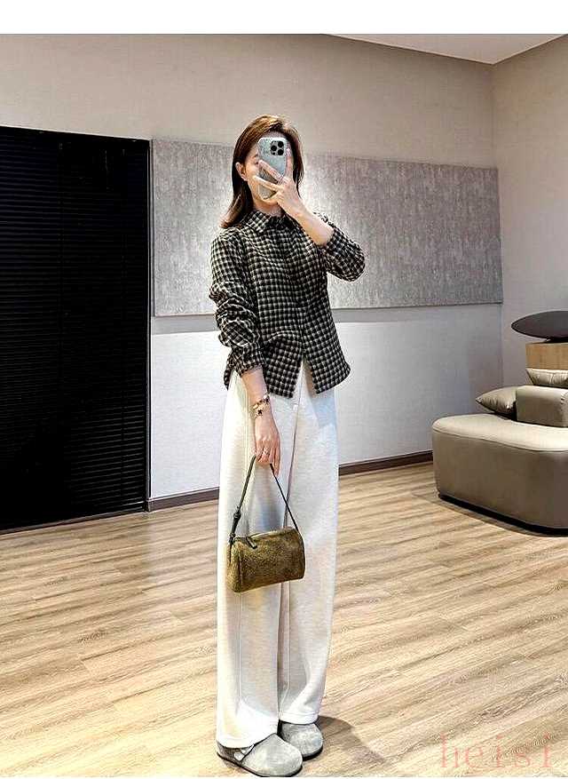 这条裤子先解决体面。早高峰电梯里,米白阔腿扫过脚踝,格纹衬衫塞一半,卡其外套披肩上,领导扫一眼只觉干净,不会想到你昨晚加班到十一点。体面是单位最低调的安全牌。