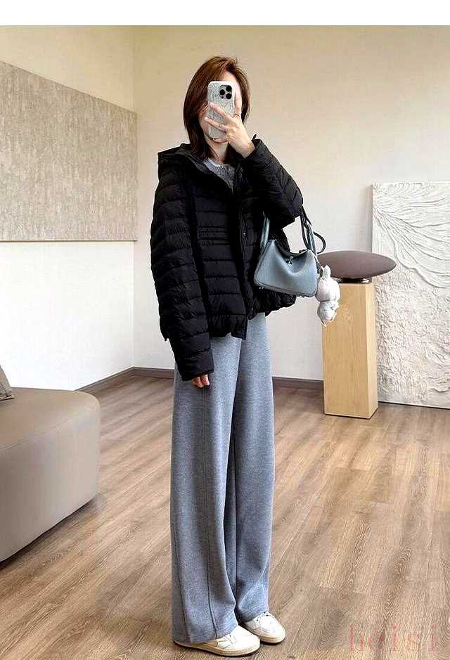 再解决身材。臀线被垂坠面料抹平,大腿缝隙藏在直筒里,九分长度露出最细的脚腕,155身高也能把比例切成三七。镜子前转一圈,比紧身裤少三公分腿围,比裙子多两层保暖。