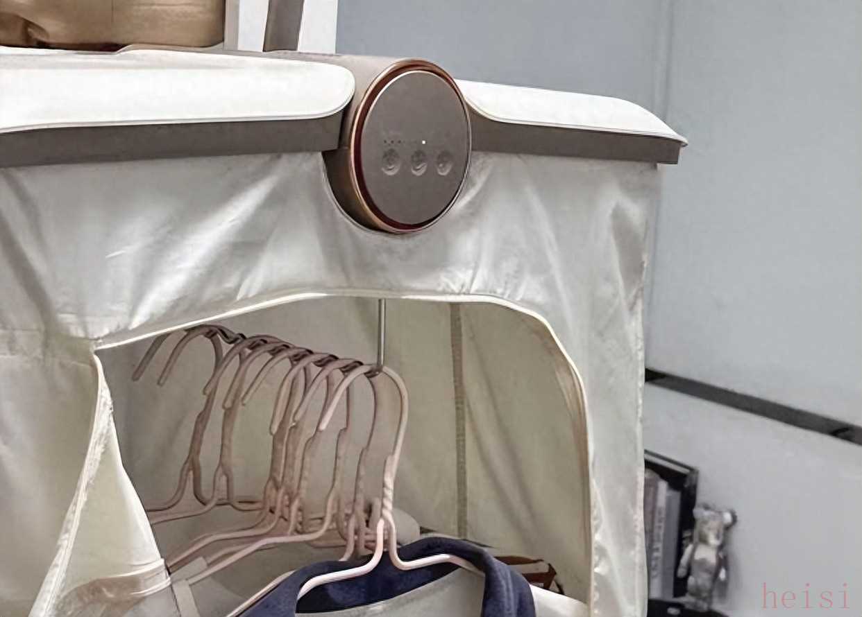 配备了多重除菌方式,包括紫外杀菌和高温灭活,能减少衣物上的细菌残留。布罩是防水防尘材质,还可以拆洗,上面有可视化窗口,能随时查看烘干进度。