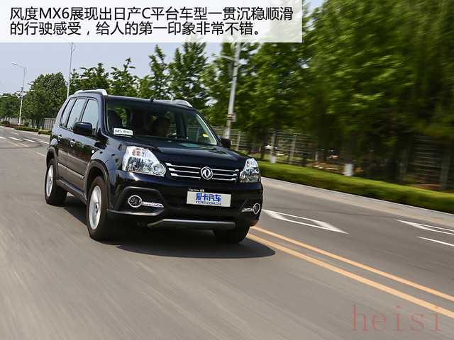 东风风度MX6与日产第二代奇骏的关系已经不用再多赘述,和基于日产C平台开发的车型开发的所有车型一样,顺滑稳重的行驶质感和轻松的驾驶氛围无疑是东风风度MX6区别于一众中国品牌车型的最大亮点。