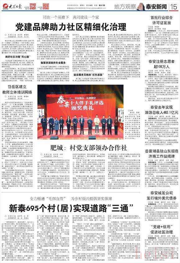 据了解,泰山区将继续推进“红领益家”党建品牌打造,推进城市社区治理体系和治理能力现代化,增强社区公共服务能力,把社区打造成百姓安居乐业的幸福家园。
