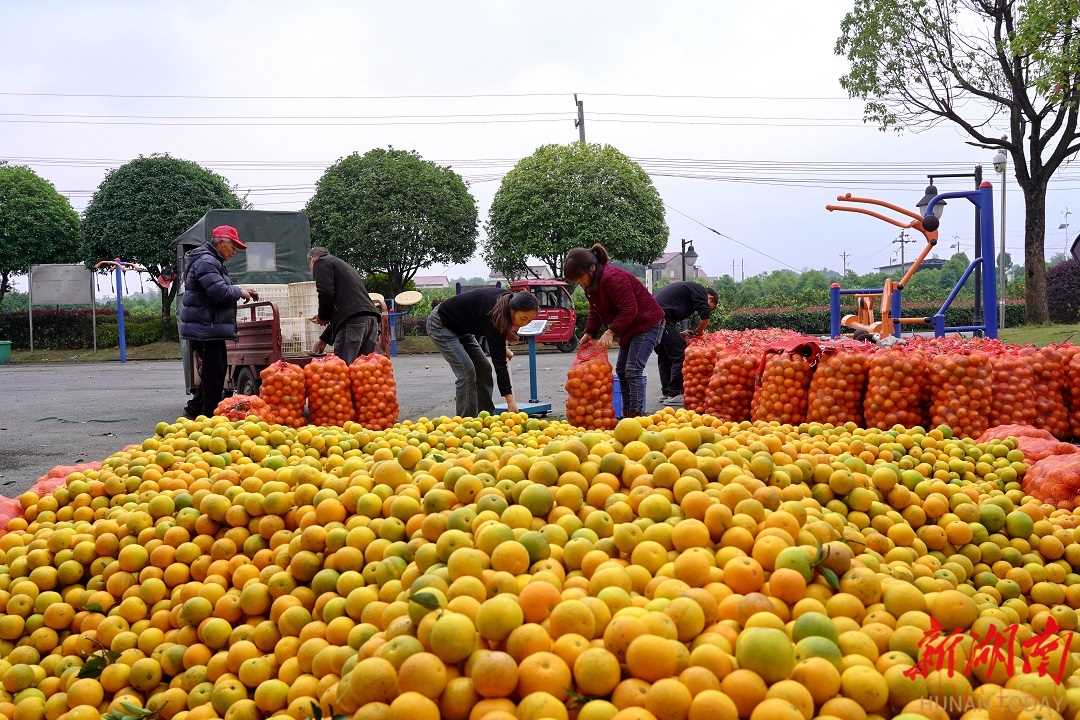 柑橘飘香迎丰收,铺就群众致富路。时至冬日,长春镇龙凤港村的柑橘种植基地里,村民们正在进行摘果、转运、选品、装袋、称重等流水线作业,为发往长沙的一车冰糖橙做装车准备。龙凤港村甜橙、柑橘、冰糖橙种植面积达1000余亩,年产量可达400万斤。李家坪村最新推广的柑橘类新品种“南洞庭贡柚”外观色泽艳丽,少核无渣,年产量可达30余万斤。