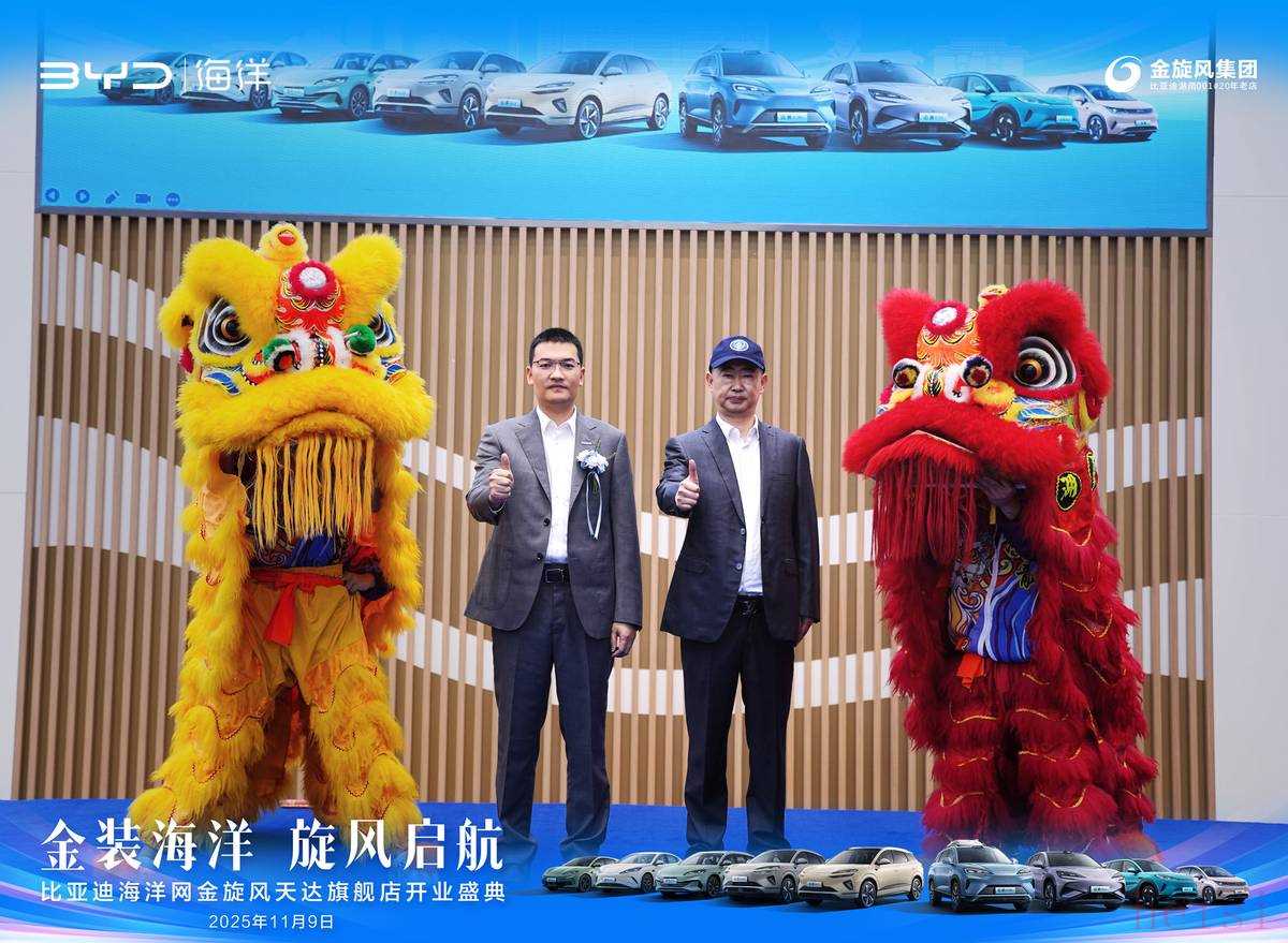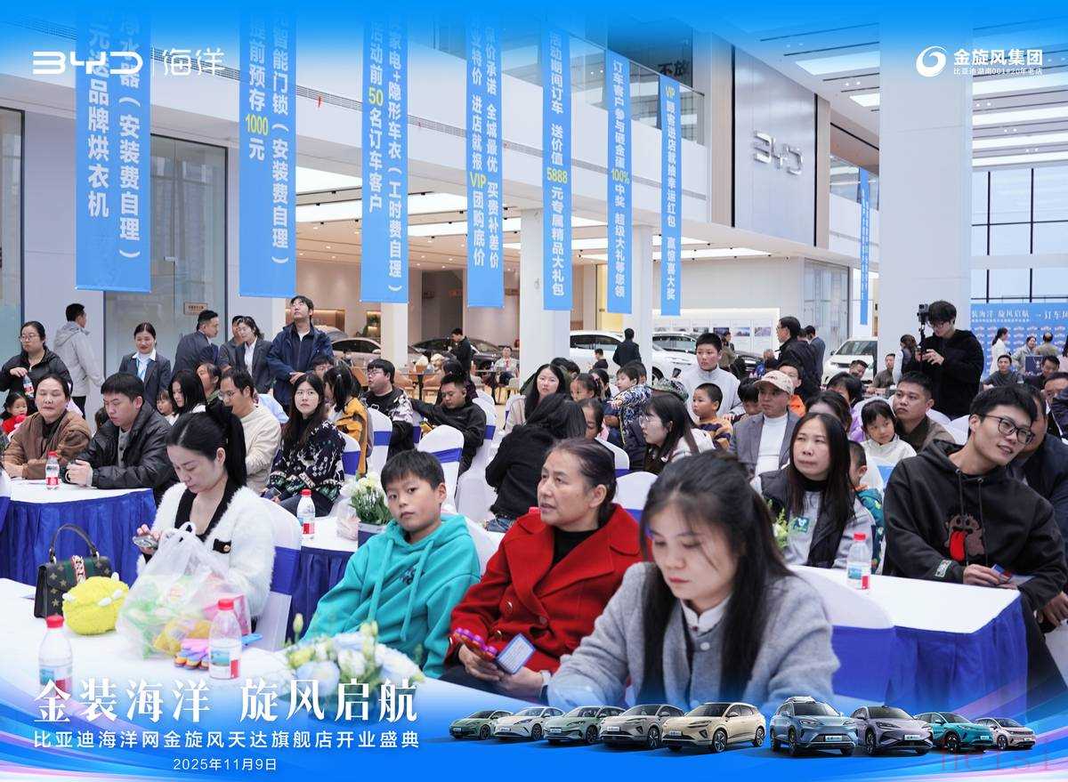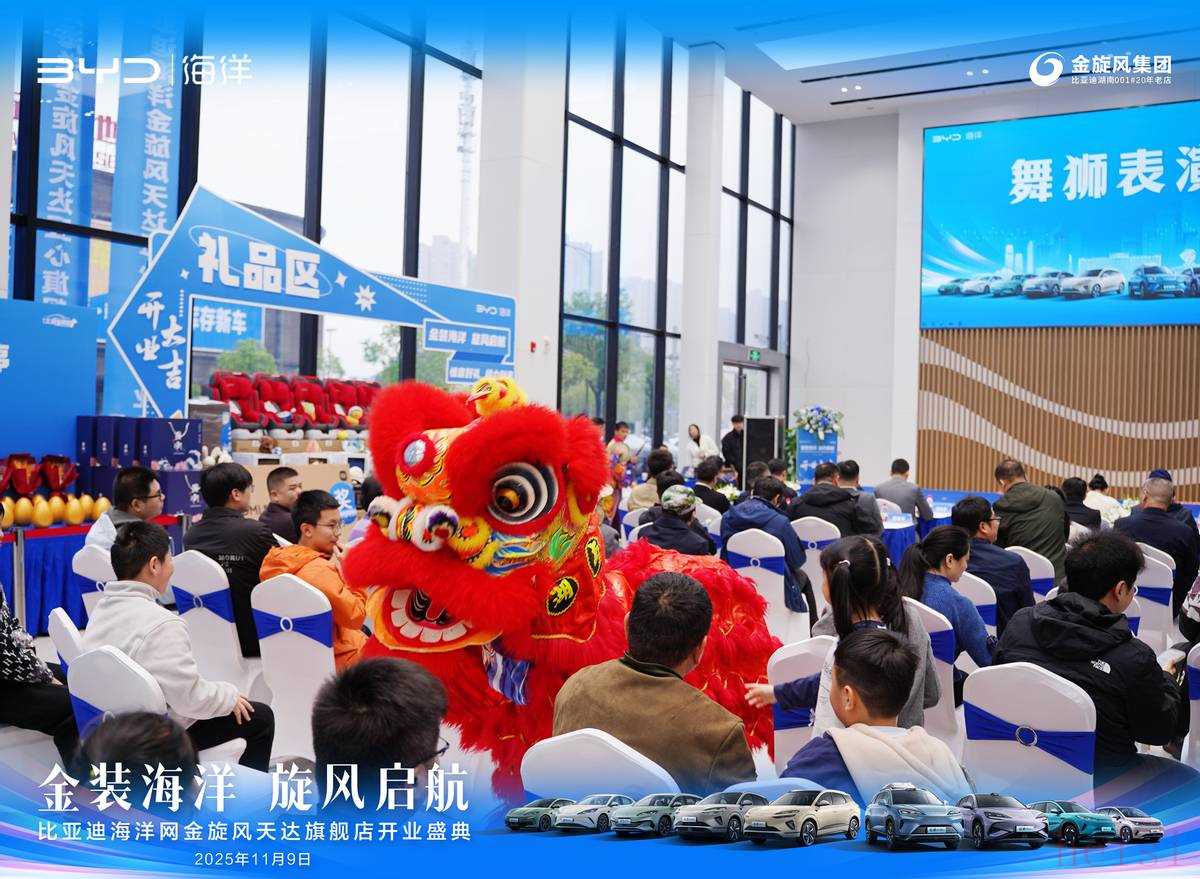 这是一个关于比亚迪海洋网金旋风天达旗舰店开业成功的消息。通常这类开业盛典会包含以下一些元素: