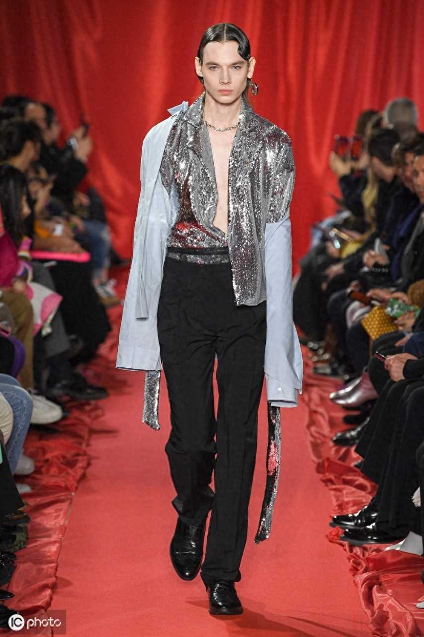 我们来聊聊意大利小众品牌 "Genny" 在 "2020秋冬季米兰时装周 (Men's Fashion Week)" 上呈现的精选套装。Genny 以其独特的廓形、精湛的工艺和充满现代感的复古风格而闻名,2020FW的系列同样延续了这些特点,并融入了当时流行的元素。