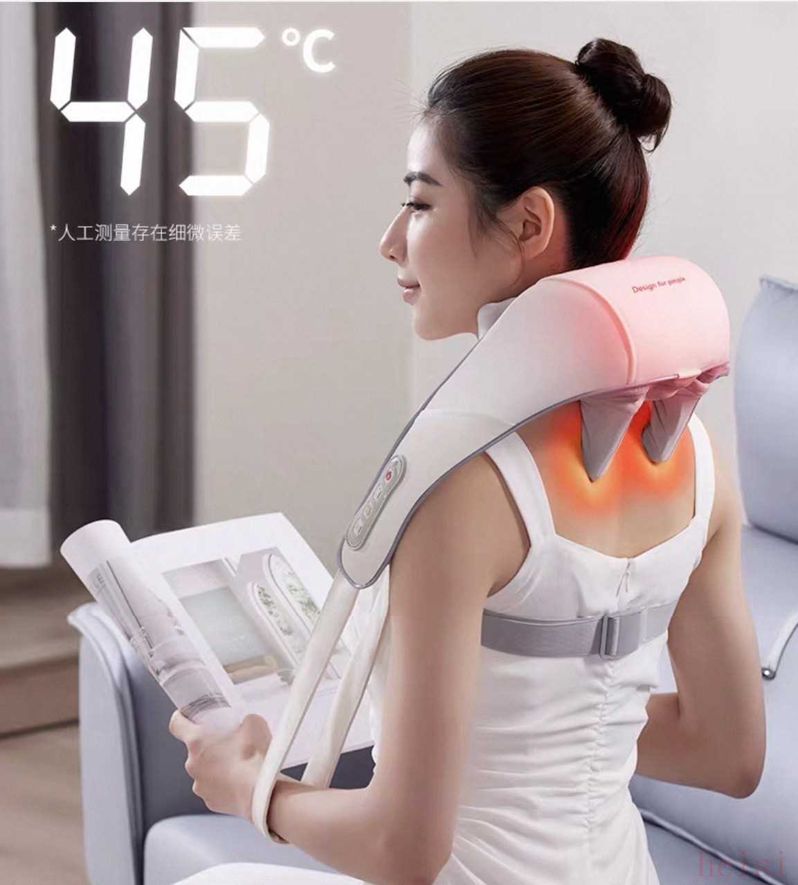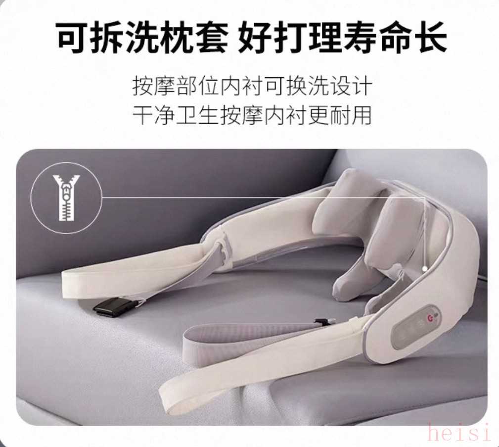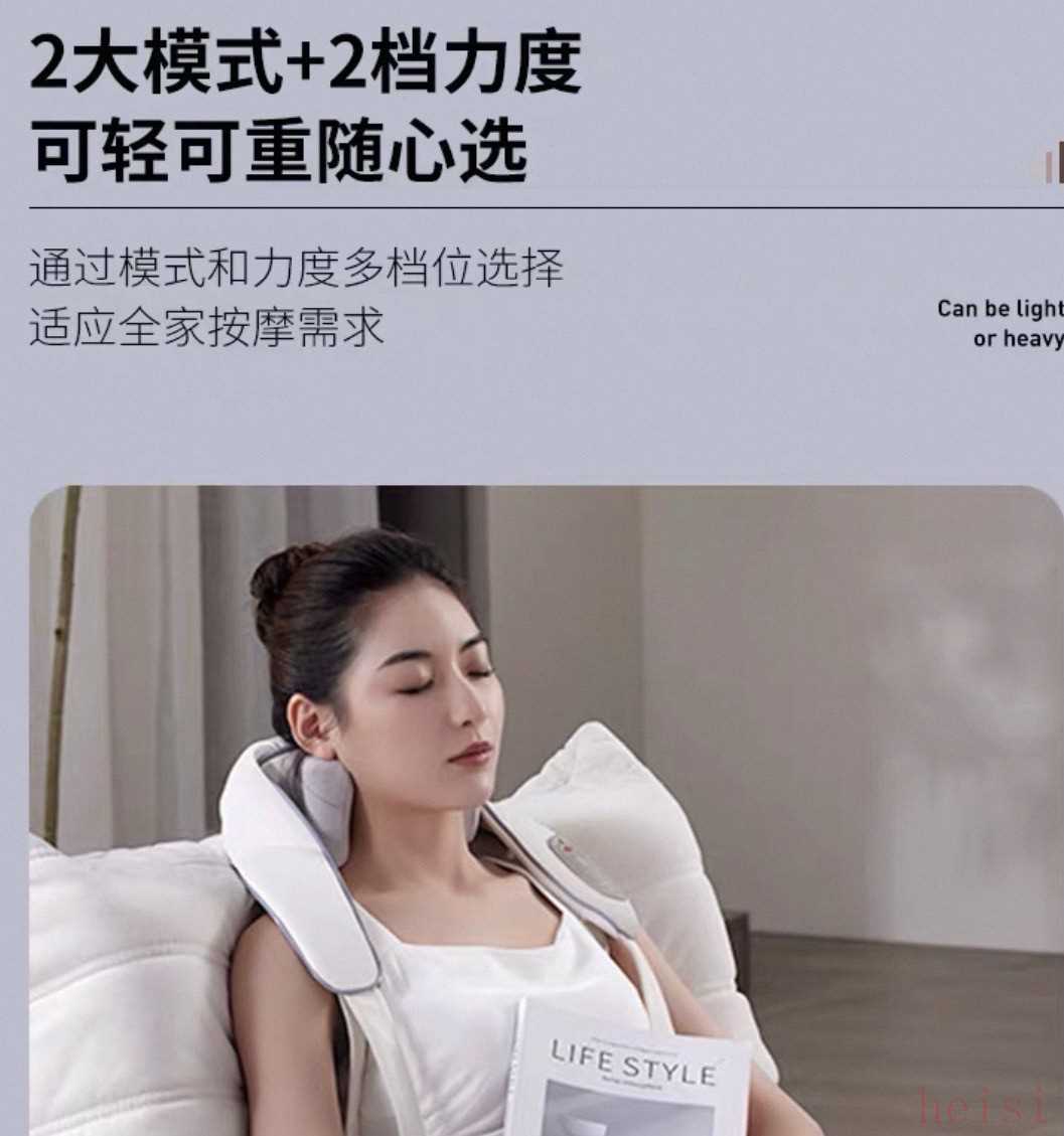 它采用揉捏+热敷的组合模式,热敷温度能稳定在40℃左右,冬天使用时暖意很舒服。机身采用防滑设计,佩戴时不易滑落,不过机身重量稍重,长时间佩戴可能会有轻微的坠感。