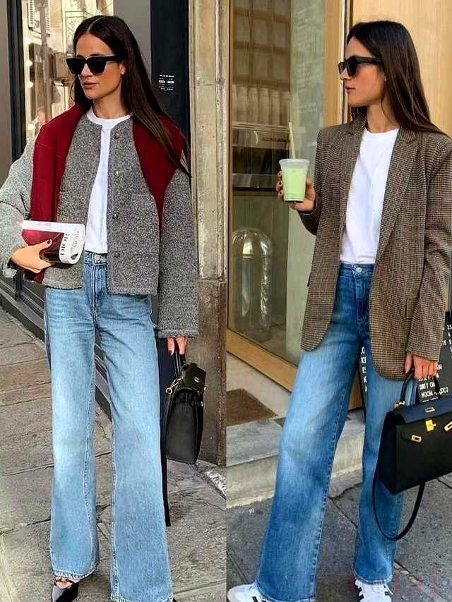 直筒裤排第二,牛仔布唱主角。巴黎人挑牛仔只认高腰九分,裤脚刚好搭在短靴口,里面藏一条羊绒秋裤看不出臃肿。颜色不玩花,深蓝和原色来回换,上身套卫衣或西装都成立,五分钟就能出门。