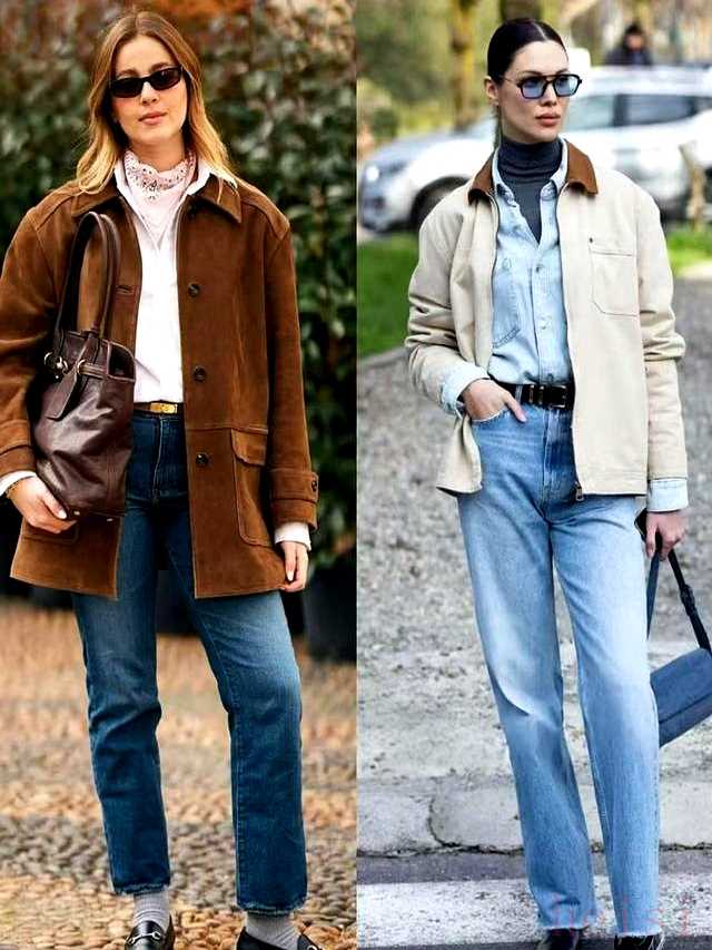 "特点:" 不再是单调的黑色,而是各种粗花呢(Tweed)、灯芯绒、高品质卡其布、深色牛仔布,甚至是带有细微纹理的混纺面料。颜色以深棕色、海军蓝、黑色为主,但也可能出现一些复古的绿色或灰色。关键是面料要厚实、有垂坠感,版型可能略宽松但不会过分臃肿。