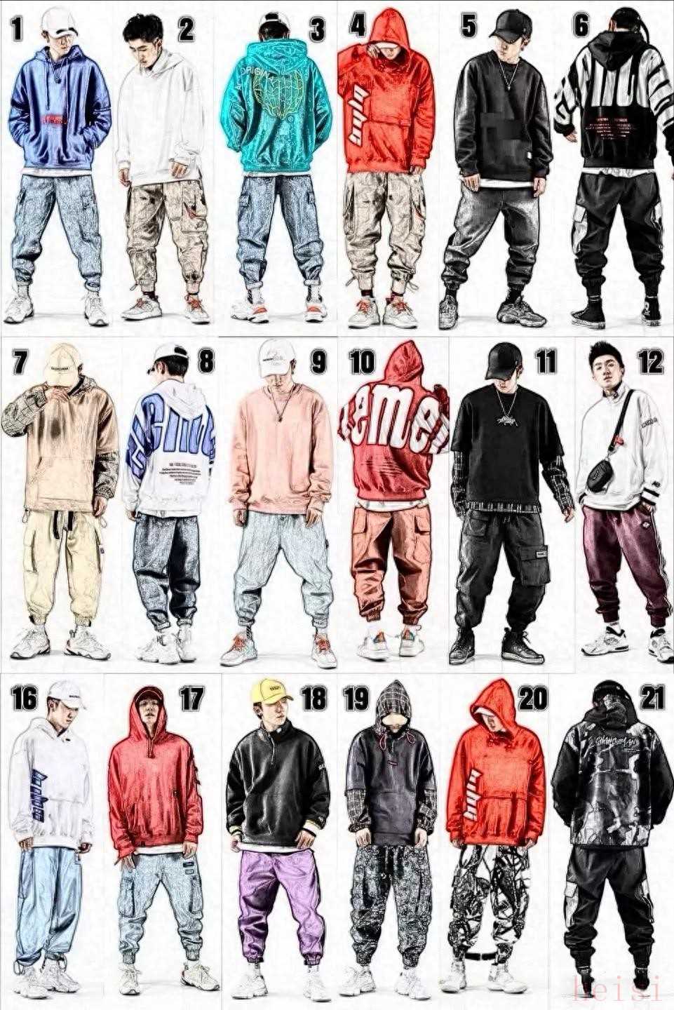 "款式:" 全拉链或半拉链卫衣都是街头经典。选择带有品牌Logo、趣味标语、或者抽象图案的卫衣,更能体现个性。