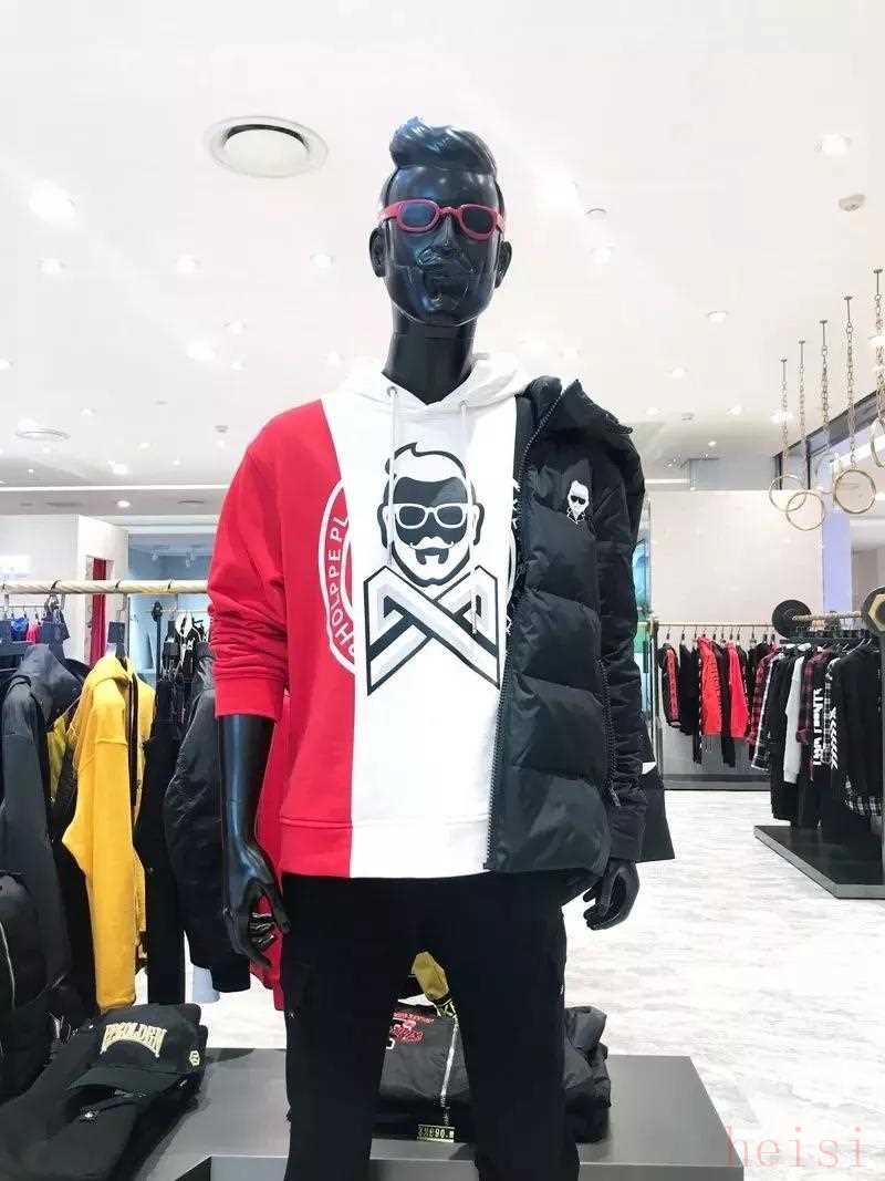 红白撞色连帽卫衣搭配黑色羽绒服,穿出冬日暖阳感,阳光颜值的男生快来GET哦~