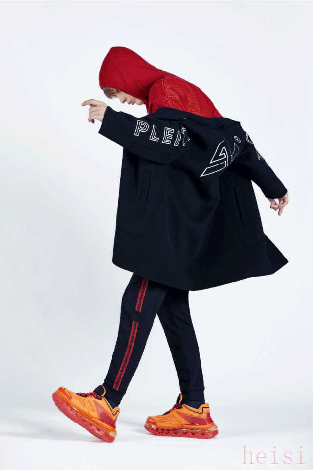 红色卫衣搭配黑色外套+休闲裤+橙色潮鞋,看上去就像邻家弟弟一样亲切可爱~