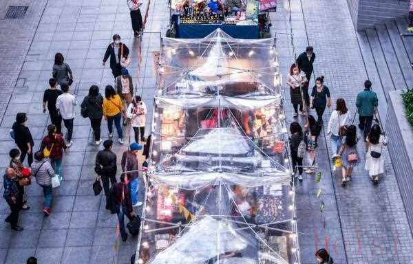 假期里,逛累的消费者还可以来到B馆3楼梧桐庭,聆听GeeK极客乐队带来的现场演出,感受音乐的魅力。六合路上的小尖顶创意游园会也如约而至,70多个摊位让人在市中心也能感受到充满烟火气的夜市魅力。