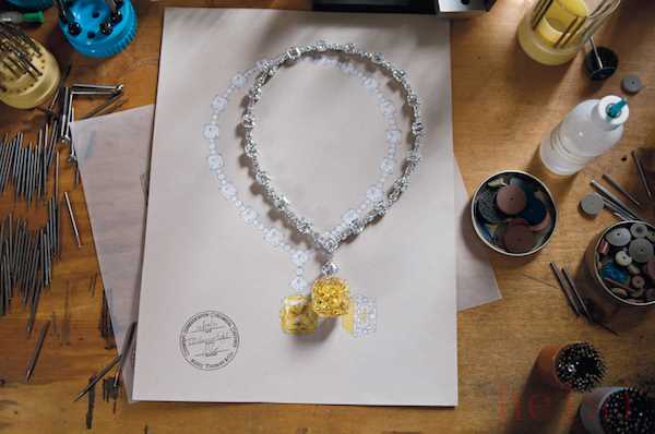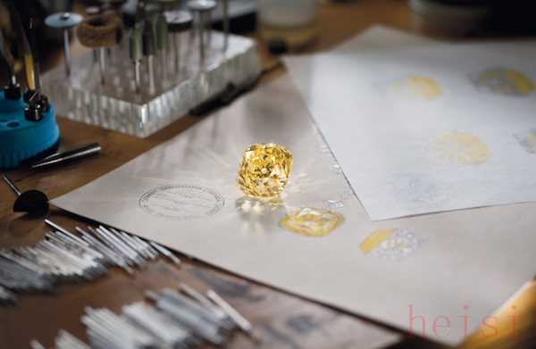 切磨这颗黄钻时是由蒂芙尼首席宝石学家乔治·坤斯博士亲自监督,手工切割82个切面,最终展现为128.54克拉的精美枕形黄钻,并在蒂芙尼纽约第五大道旗舰店内绽放光芒。