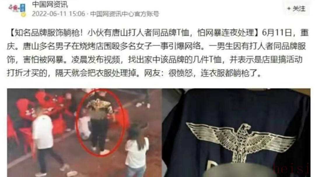 结果,因为唐山打人的暴徒中有一位穿着这个品牌的衣服。