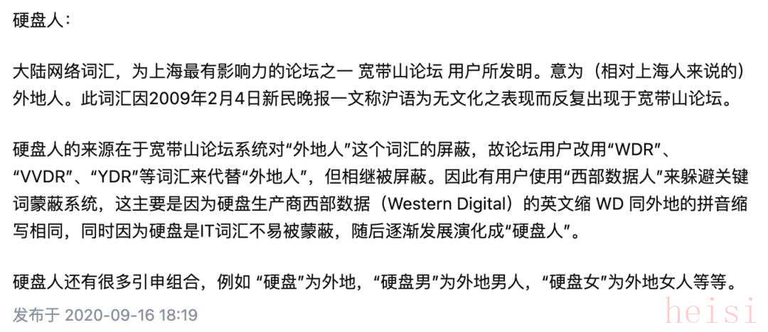 比如,一些有歧视心态的上海人对外地人的蔑称:“硬盘人”。