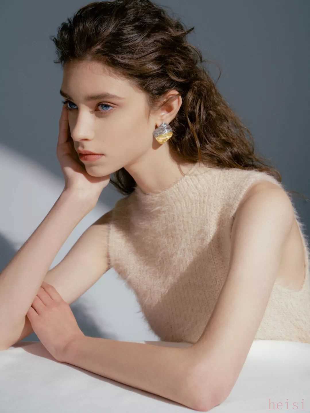 耳钉是中间鼓起来、有弧度的设计。不仅更有60年代复古的感觉,还更有光泽感,阳光照着的时候波光粼粼的,特别有“海上生明月”的意境。▼