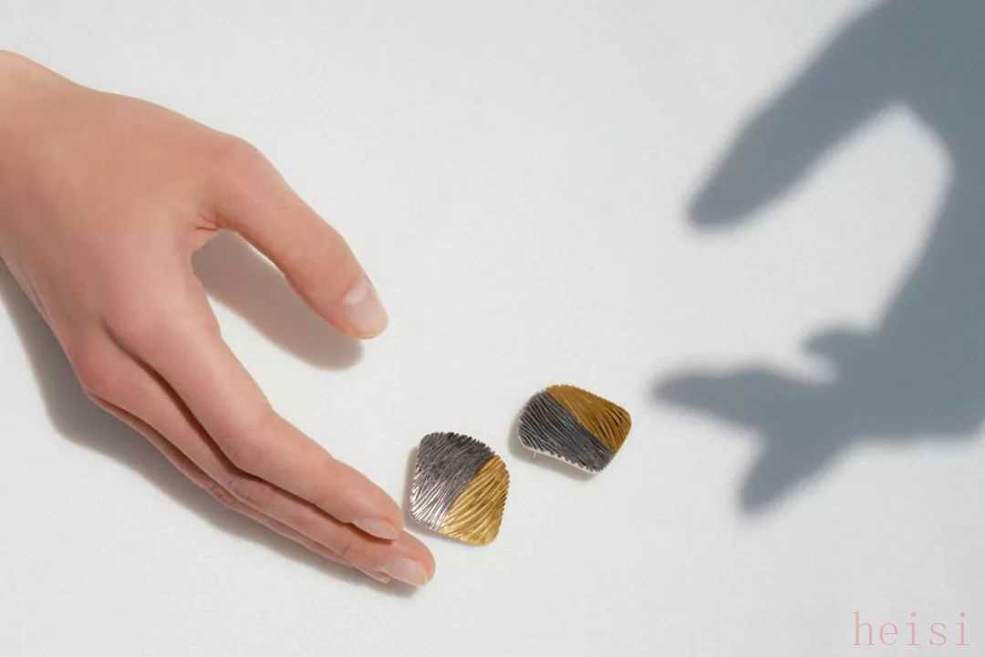 别看这幅耳钉看起来简约,做的时候不仅要照顾到水波纹理,还要把两种色彩融合在一起,工匠师费了不少功夫才有了现在的模样。
