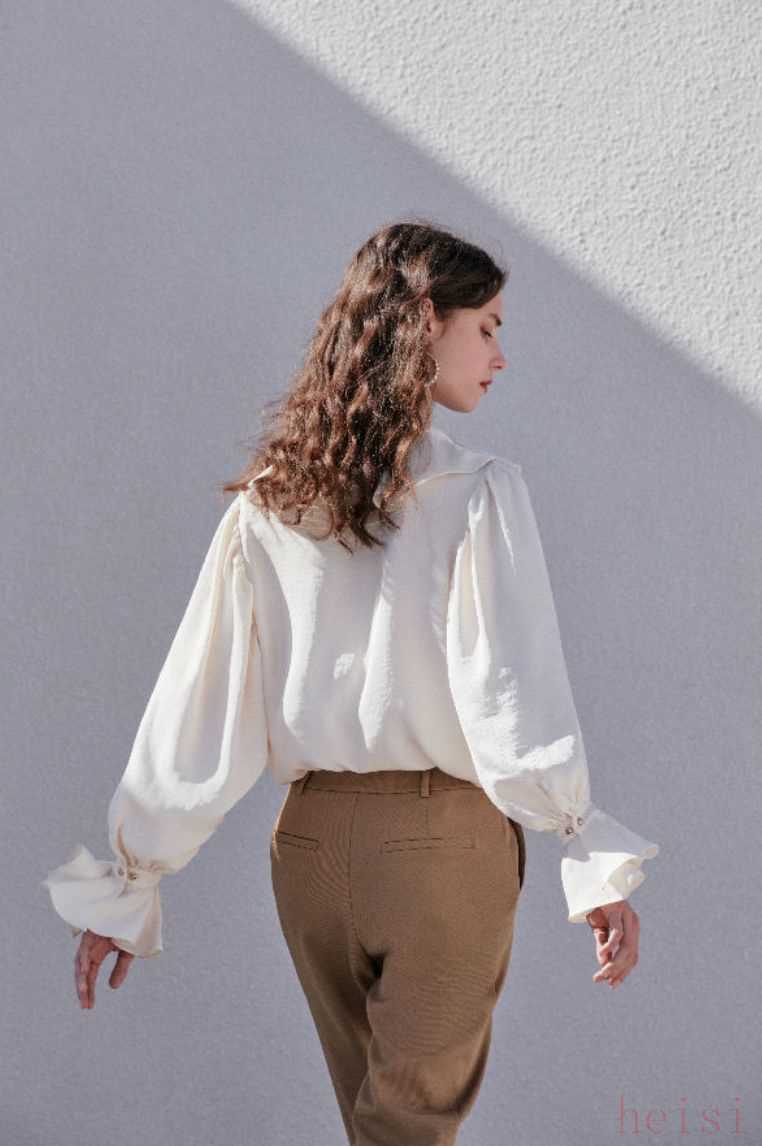 灯笼袖虽浪漫,但也有点不方便,洗手、办公的时候都要更留意一下袖口。我们这件衬衫袖口有调节扣▼