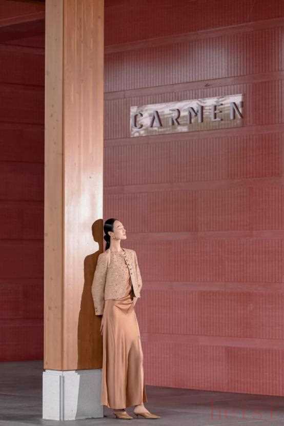 4月24日,Carmen卡蔓2024秋冬新品大秀•时韵正式发布。大秀于岭南画卷诗意意境之地——悦榕庄上演,模特闲逸的步伐地映现红砂岩灵感庭院中。