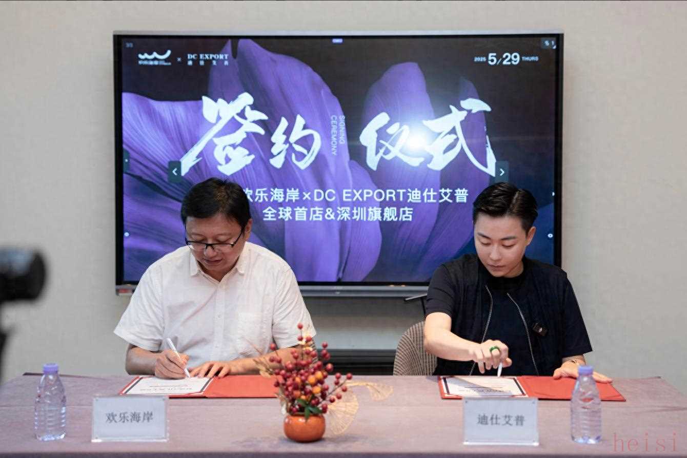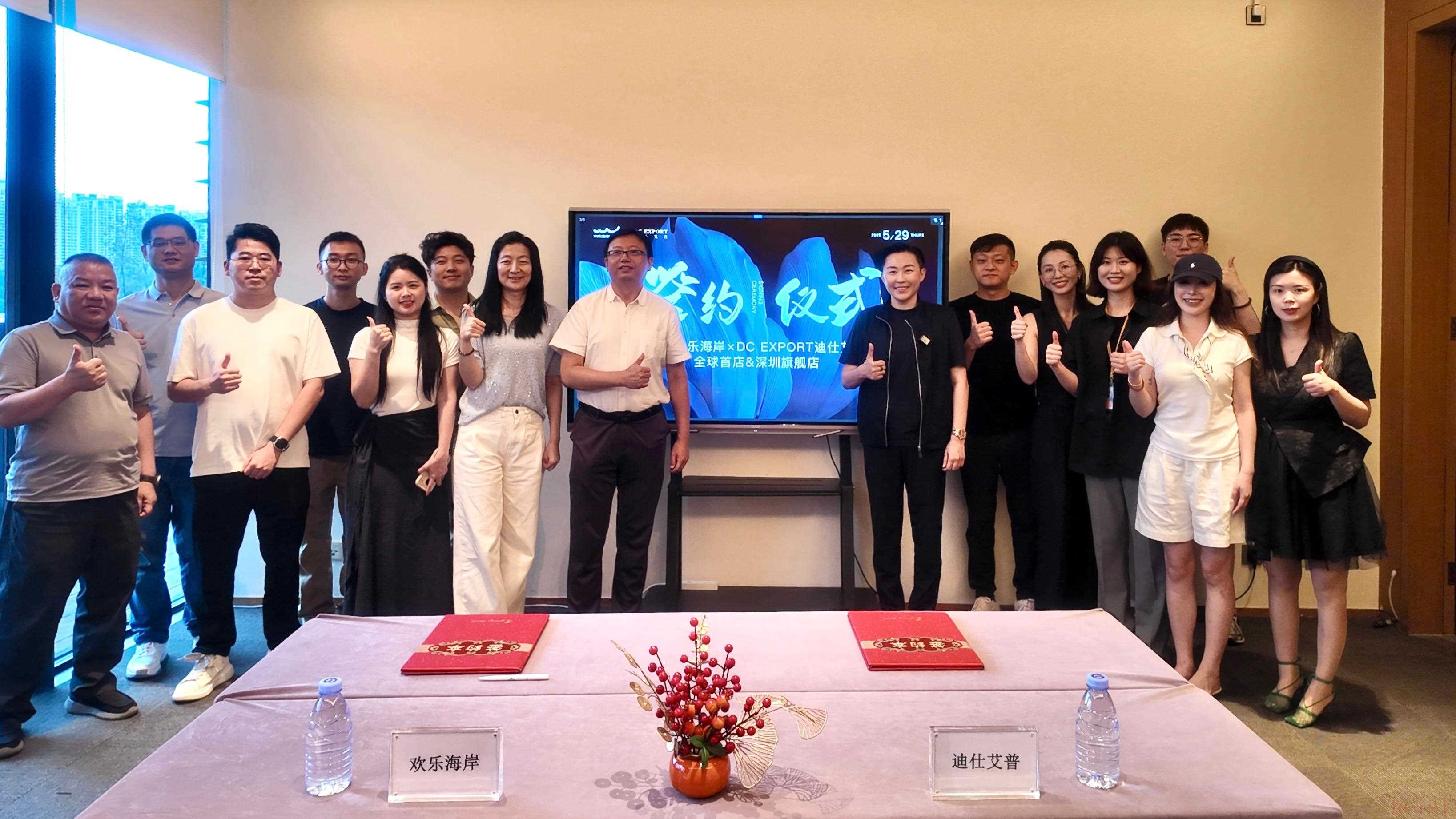 5 月 29 日,在深圳欢乐海岸万豪行政公寓海岸餐厅,DC EXPORT迪仕艾普与深圳欢乐海岸举行战略合作签约仪式。深圳华侨城都市娱乐投资公司党委书记、副总经理余粤,迪仕艾普创始人兼董事长叶海洋共同出席并见证这一里程碑时刻——标志着科技护肤首次被正式写入世界级城市文旅版图。
