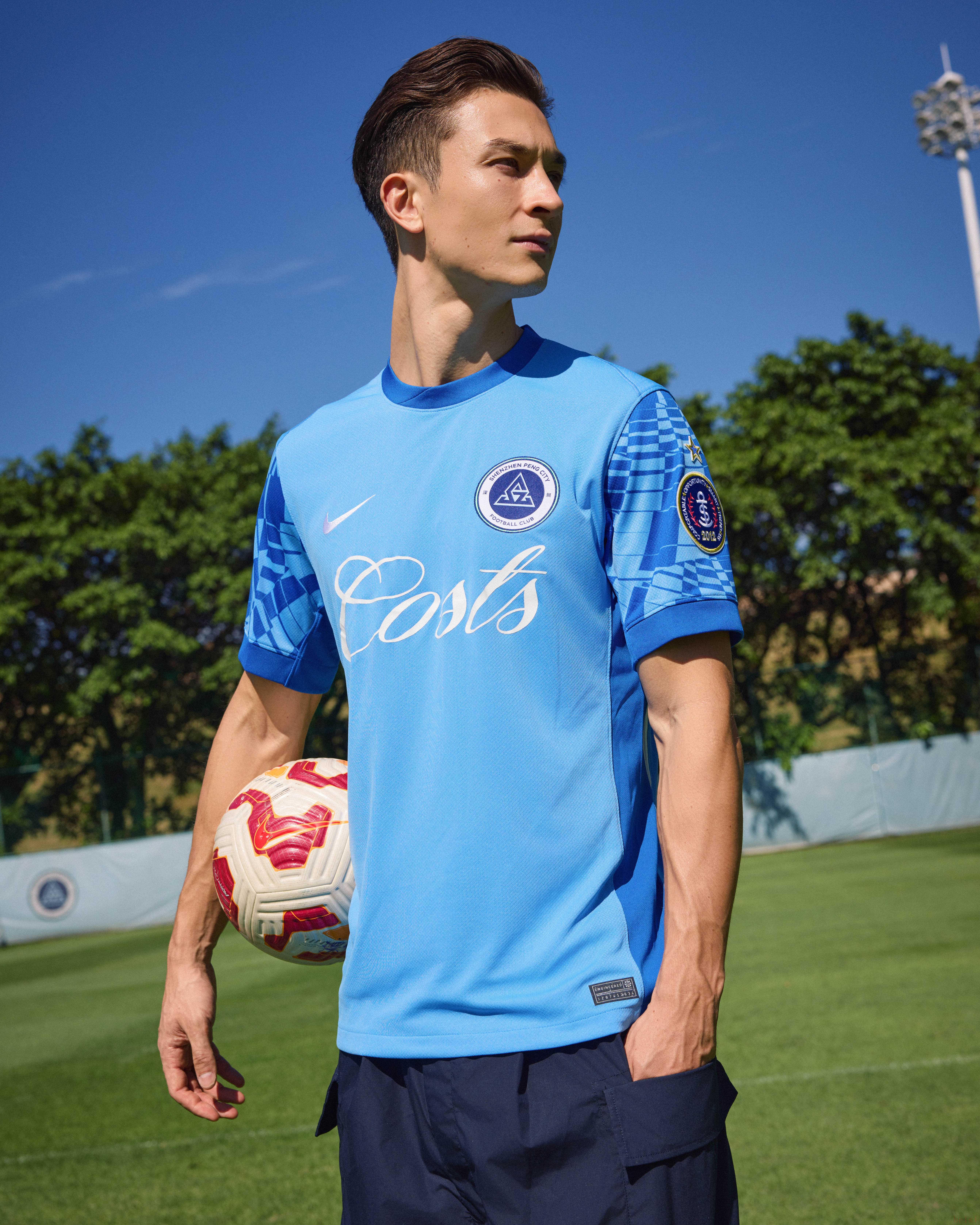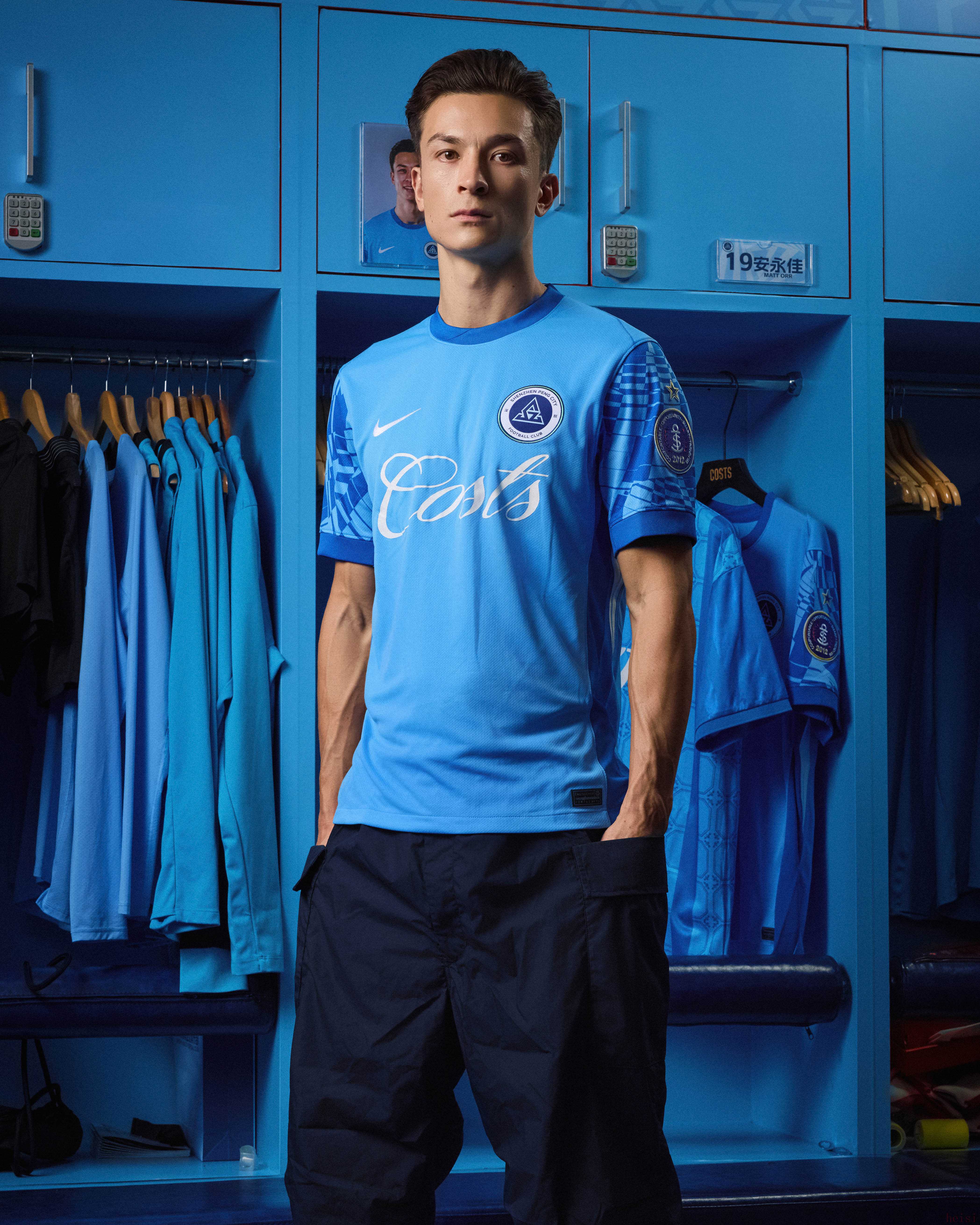 深圳本土潮流品牌COSTS X 深圳新鹏城足球俱乐部联合推出联名限定球衣,它以深圳新鹏城 2025 赛季主场球衣为蓝本打造而成。球衣胸前印有潦草手写英文字体的 Costs 标志,笔触自然又奔放,既契合街头艺术不受拘束的精神,也彰显出运动文化里 “即兴” 与 “真实” 的特质。 左臂处缝制着 COSTS 的船锚徽章与后背下方刺绣的船锚图案及俱乐部经典标语 “Love this city”遥相呼应,在细节中展现巧思。精致的徽章与刺绣处理,不仅提升了球衣的层次与质感,也为整体设计增添了一丝温度与情感,让这件球衣在运动之上,更承载着城市与热爱的故事。设计灵感源于街头文化中张扬而真实的表达方式,通过不受拘束的笔势展现自由与激情的态度,象征着品牌与球队对「敢拼、敢造」精神的共同理解与诠释。