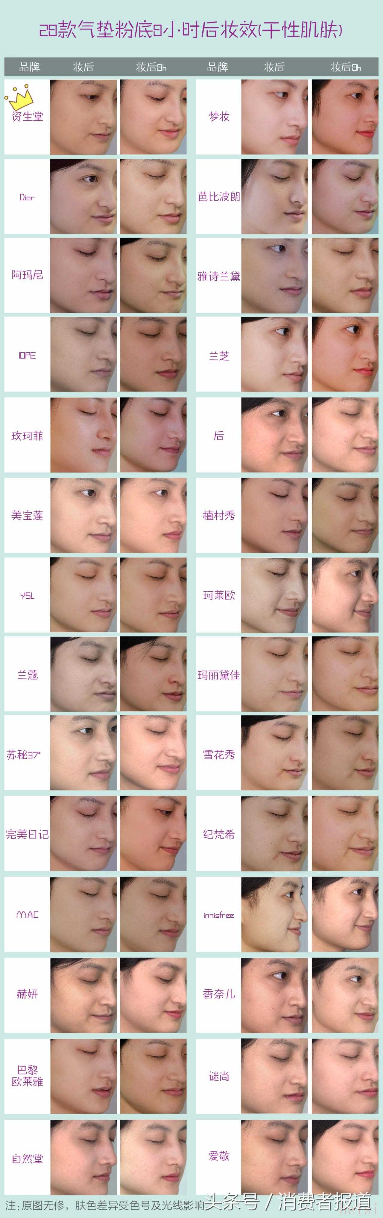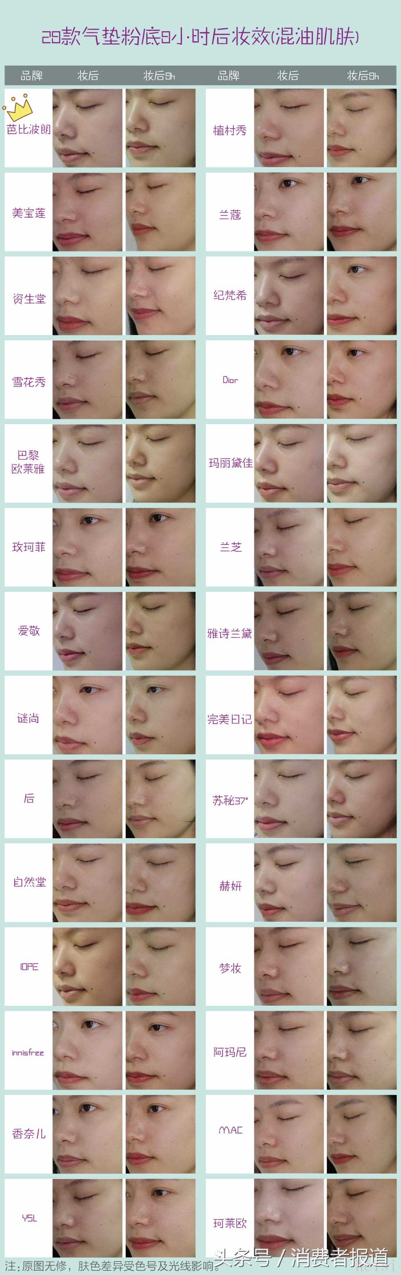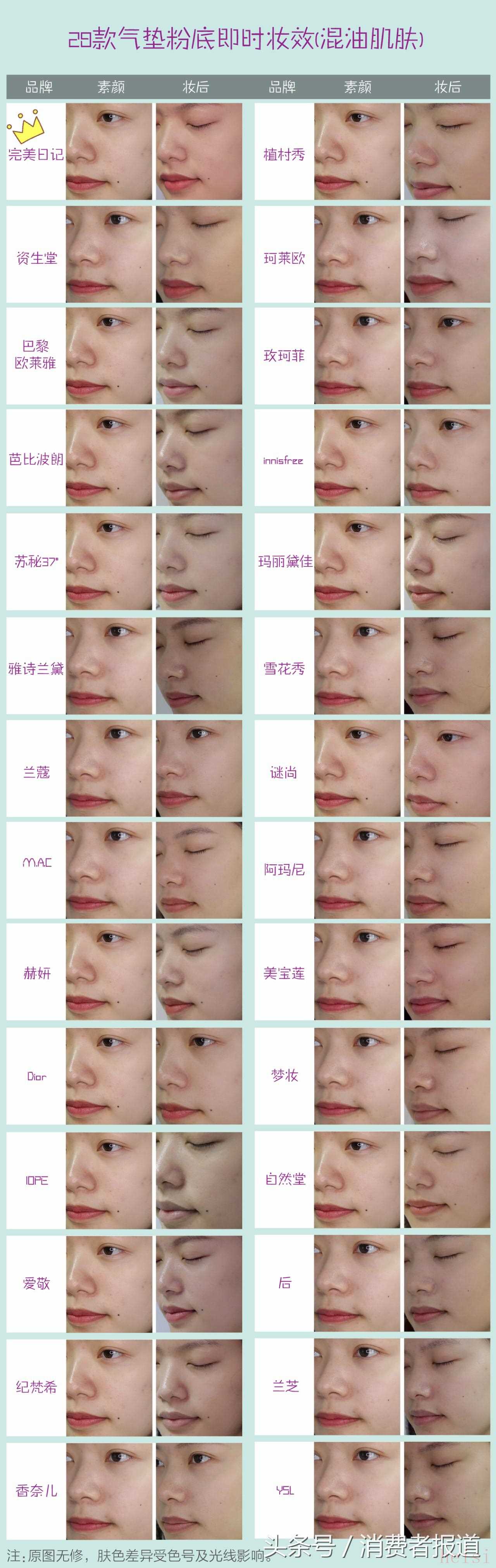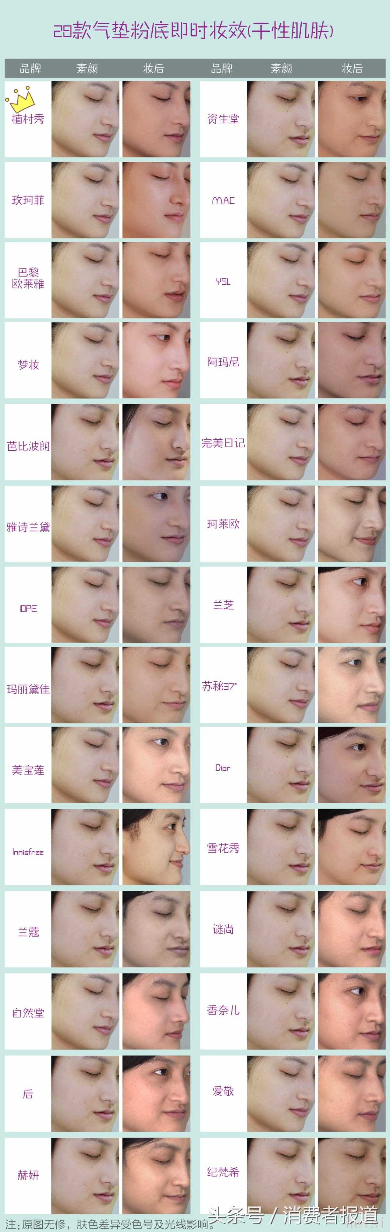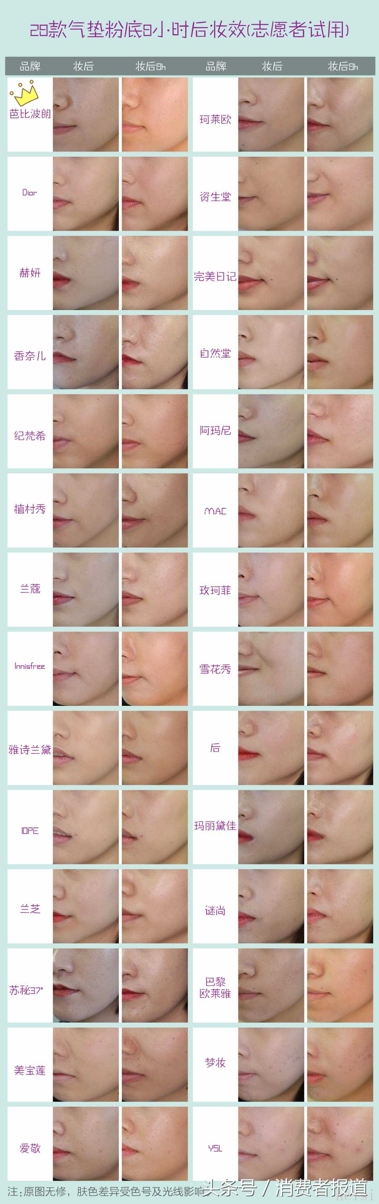 此外,消道长还招募了16位志愿者(肤质包括:5名混干/干性、10名混油/油性、1名中性肌肤)也直接上脸体验了28款气垫的实际妆效。