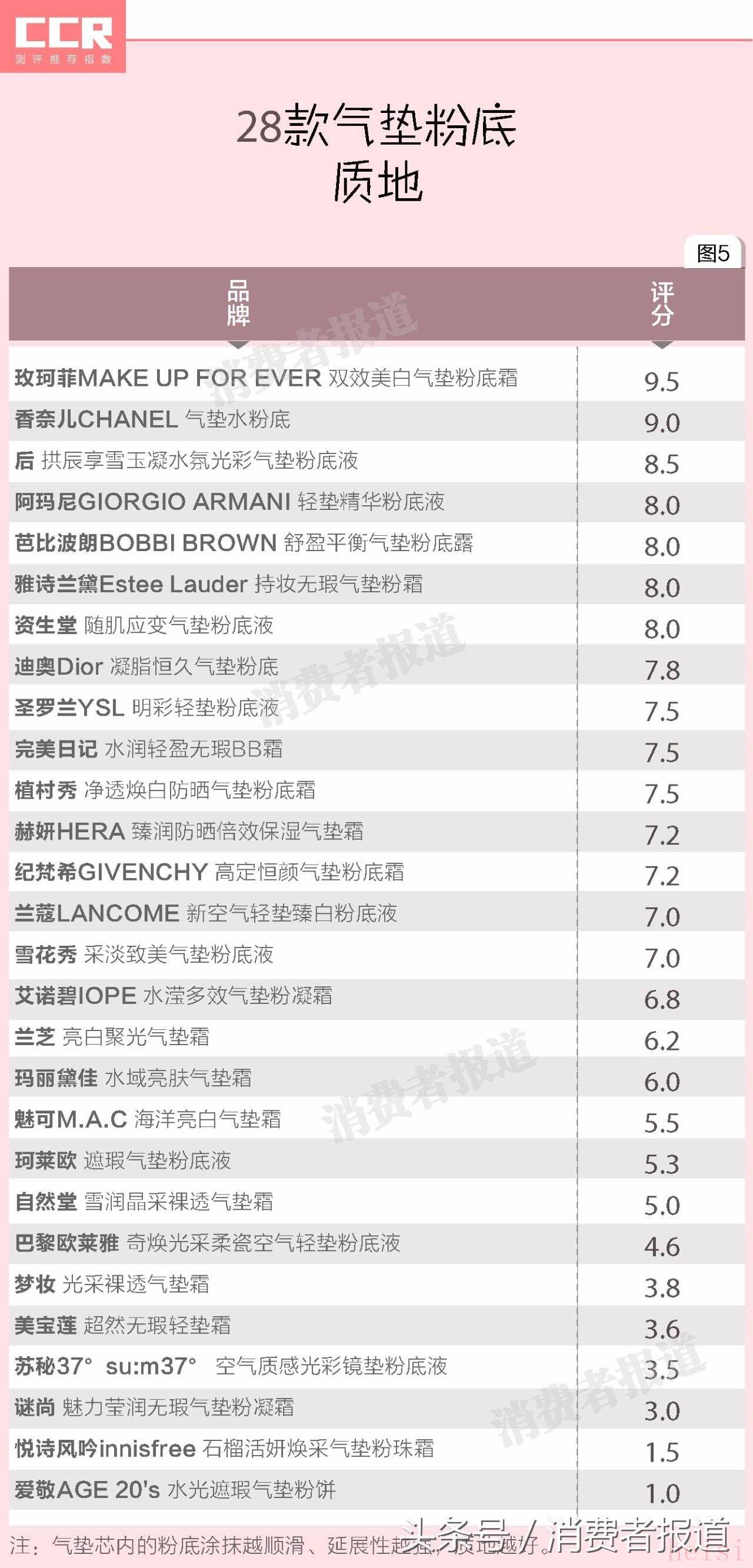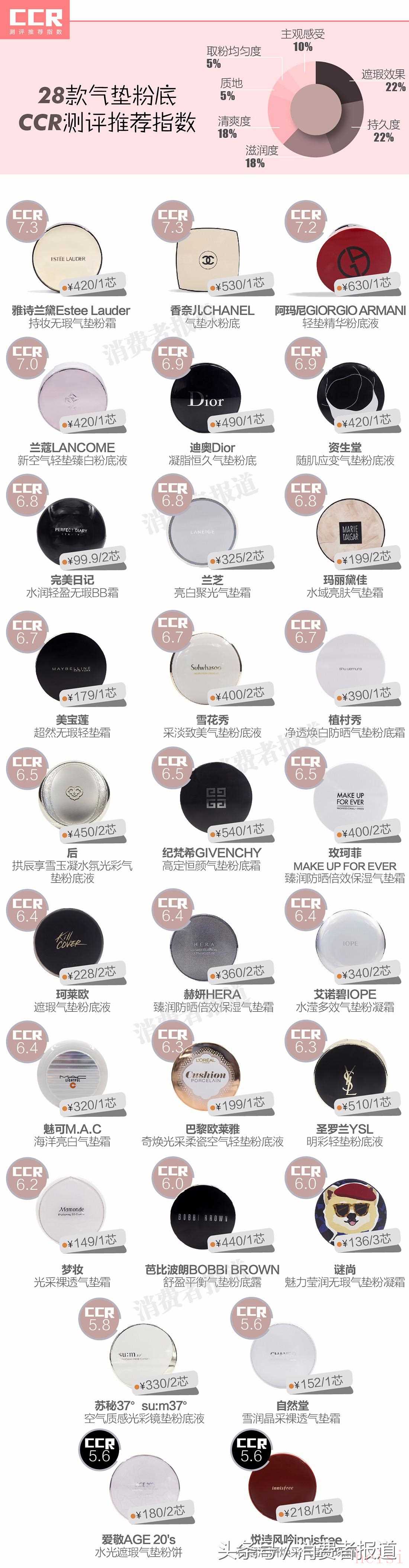2018年8月,《消费者报道》测试了市面上热销的28款气垫粉底,欧美、韩系、日系一网打尽。