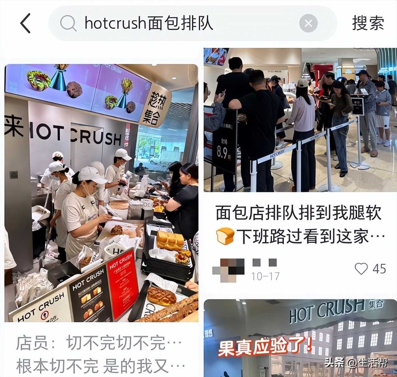 以网红中高端面包品牌HOT CRUSH趁热集合为例,该品牌于2022年在上海起家,主打当代复古风格,走红后曾创下开业活动期间排队五小时的记录。
