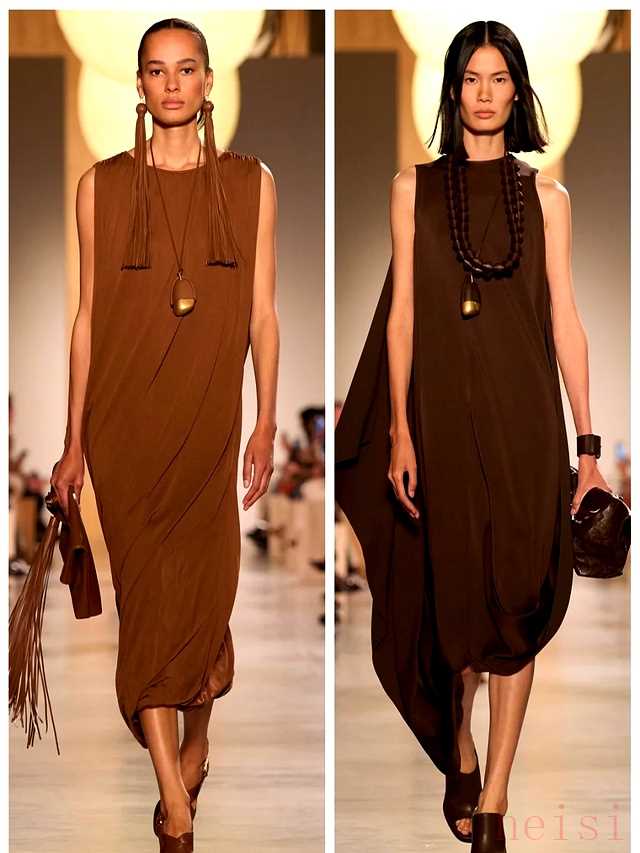 这背后的理念,是在强调功能性与美学的平衡。很多人担心高端时尚会变得不实用,但这系列却打破了这个误区。多层叠穿和可拆卸的配件设计,让搭配变得灵活多变,你可以在不同场合轻松转换风格。这种“日常奢华”,既能满足你对时尚的追求,也能适应多变的生活节奏。比如,一件宽松的长裙,不仅适合休闲,也可以搭配不同的饰品成为出门的最佳选择。这种设计实用性强,却又带有独特的艺术气息,满足了现代人的需求。
