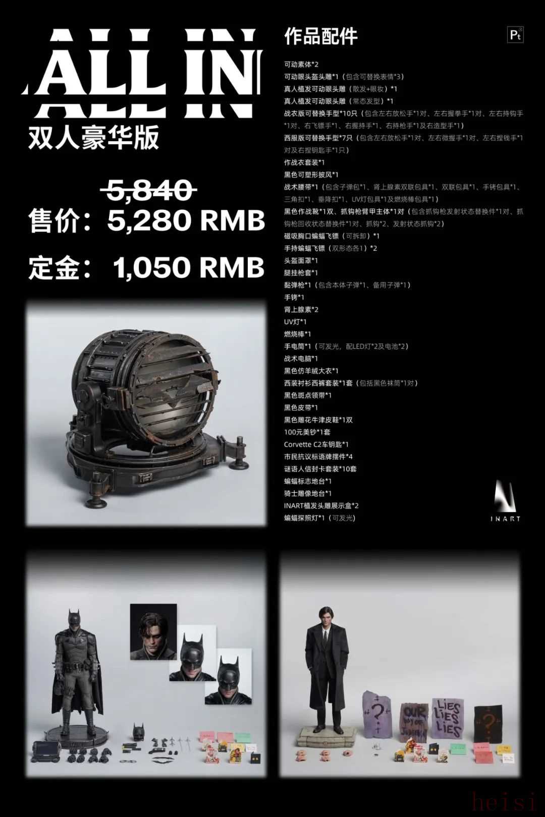总的来说这款新蝙蝠侠的表现还不错尤其是两颗植发的真人头雕非常让人期待虽然官方定价的确不便宜但考虑到现在Hot Toys的售价也是水涨船高