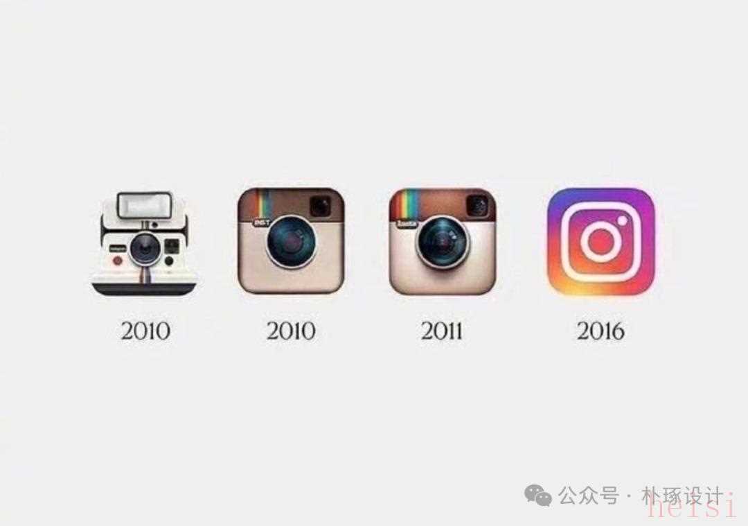INS logo演变过程2010年,Logo是“相机+社交符号”的复杂组合。2016年升级为“白色相机图标”,风格极简、辨识度拉满,成为全球社交平台的视觉符号。极简Logo适配所有社交场景(从APP界面到品牌营销),传递“简洁、社交”的品牌精神,成为INS“社交信仰”的视觉载体。