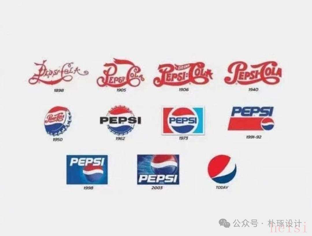 百事可乐logo演变过程1939年,Logo是“复古风格图案+文字”,风格偏老派。1961年推出“蓝色背景+白色文字”,色彩对比强烈;2008年升级为“蓝色渐变+现代字体”,更显年轻活力。现代Logo适配年轻消费群体,通过色彩与字体的年轻化设计,持续强化“活力、时尚”的品牌标签。