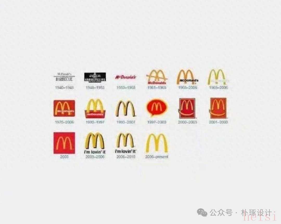 麦当来logo演变过程1950年代,Logo是“红色背景+白色McDonald's字样”,信息量大但辨识度低。设计师团队聚焦“M”字母,逐步放大、简化线条,最终形成“黄色M字”——既呼应品牌色,又成为全球快餐界的视觉符号。M字Logo适配所有场景(从快餐店门头到外卖包装),低成本印刷、高辨识度,让麦当劳在全球化扩张中“所到之处,一眼可辨”。