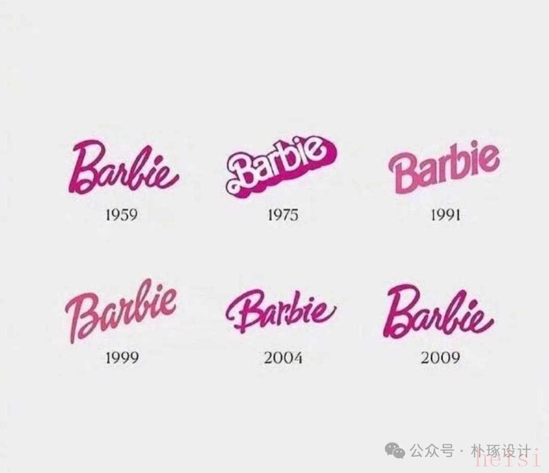 BAILIE 芭比logo演变过程1959年,Logo是“复古手写体”,风格偏柔和。2009年回归“1959年原始手写体”,保留粉色系主色调与手写感,唤起消费者“童年玩伴”的情感共鸣。经典Logo适配所有场景(从玩具包装到品牌营销),传递“少女、时尚”的品牌精神,成为芭比“少女信仰”的视觉载体。这些Logo的演变,共同指向“坚守核心识别元素+灵活迭代适配时代”的商业智慧:通过“经典符号”锚定品牌记忆点(如麦当劳M、耐克钩子、可口可乐红白),强化消费者认知;通过“现代设计语言”适配数字化传播(如苹果极简黑白、INS极简白底),保持品牌活力。Logo不仅是视觉符号,更是品牌历史、文化与商业策略的浓缩,其“坚不可摧”的本质,是品牌在时代变迁中持续传递价值、连接消费者的商业智慧。